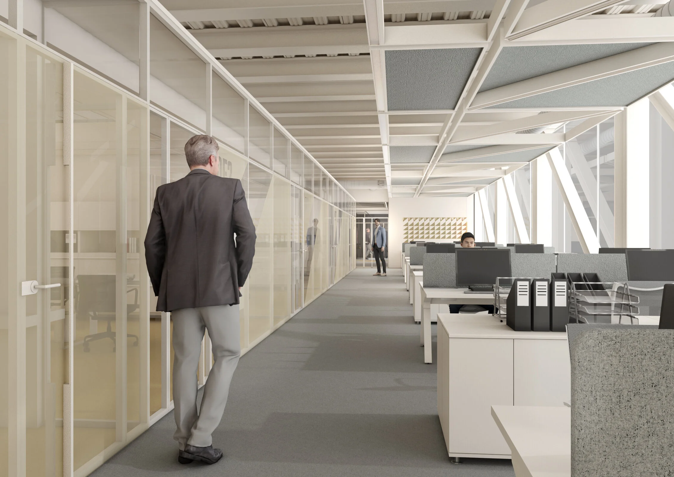 In the interior, a non-hierarchical setup is aimed to be realised, and continuous visual contact is maintained between production and management facilities by mezzanines and galleries. These skewed voids between floors ensure maximised daylight into working spaces; while at the same time enhance the vertical depth of the space.